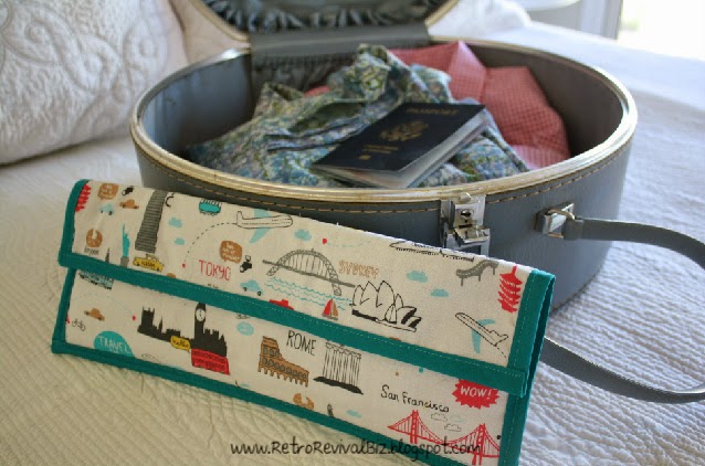 The new design is roomier and compartmentalized, yet still compact enough to easily fit inside even the smallest of suitcases and travel bags. For this first-run of the new design (available in my Etsy shop), I used bright, fun travel motif fabrics.